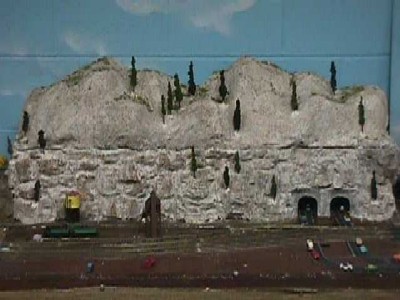 Looking over Three Palms Station, next to the wall, is Rattlesnake Pass, owned by Vicki and Jim Swanson. The scenery on this module is a welcome addition to the layout. This module has a mountain with roads and railroad track passing through at different levels. The top of the mountain is removable just in case a careless railroad engineer wrecks his train in the tunnel. There are destinations for a peddler freight train to drop off an occasional car and possibly pick up one or two empties.