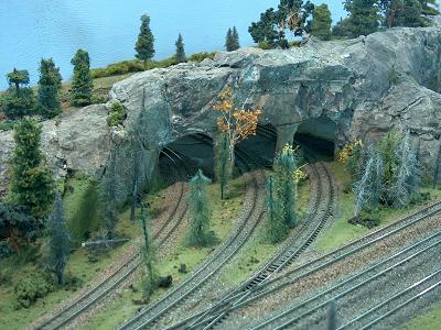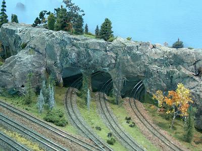 | Our staging yard for the MTL is inside the square, and this module is where the trains enter and exit the layout. Designed as multiple tunnels, it provides a little excitement for the little ones who seem to like tunnels. Parents, too, like to point out to their little ones when the trains enter or exit the layout. | ||